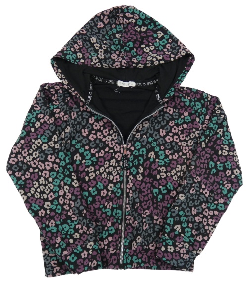 Čierno-fialovo-ružovo-zelená prepínaci crop mikina s leopardím vzorom a kapucňou