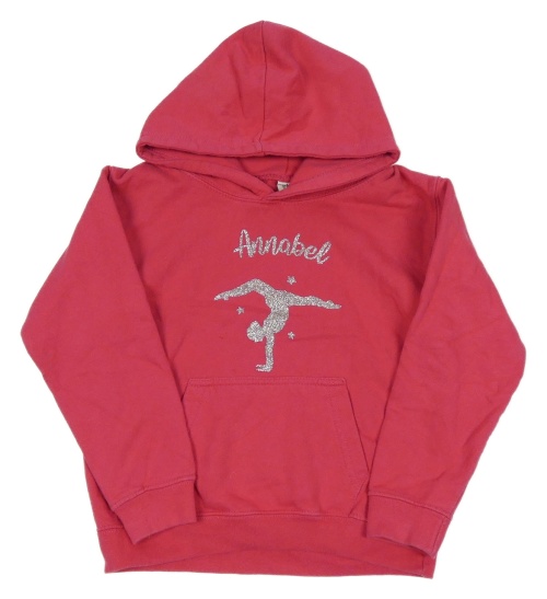 Tmavoružová mikina so stříbrnou gymnastkou a vreckom a kapucňou AWDis