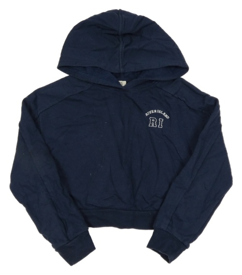 Tmavomodrá crop mikina s logom a kapucňou RIVER ISLAND