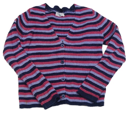 Tmavomodro-lila-tmavoružový pruhovaný rebrovaný žinylkový prepínaci sveter Primark