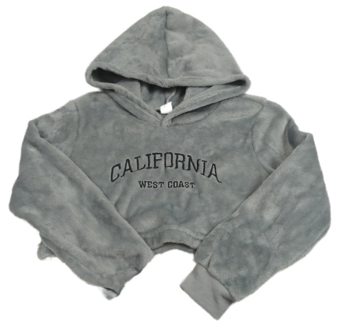 Sivá chlpatá crop mikina s nápisom a kapucňou Shein