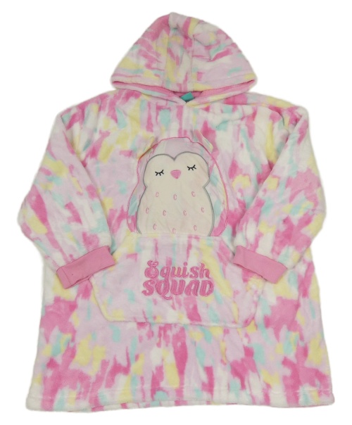 Ružovo-bielo-žltá vzorovaná plyšová oversize mikina s tučňákem a kapucňou Primark