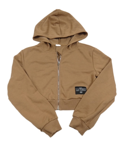Hnedá prepínaci crop mikina s nášivkou a kapucňou Shein