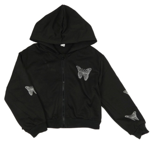 Čierna prepínaci crop mikina s motýly a kapucňou Shein
