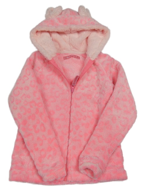 Neónově ružová vzorovaná chlpatá prepínaci mikina s kapucňou