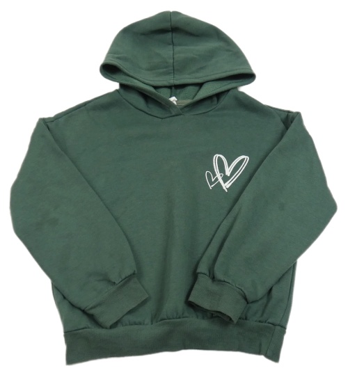 Tmavozelená mikina so srdiečkami a kapucňou Shein