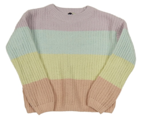 Lila-mintovo-oranžovo-žltý žinylkový pruhovaný sveter George