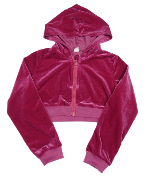 Rubínová zamatová crop prepínaci mikina s kapucňou Shein