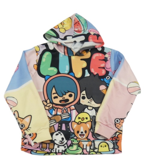 Barevno-světlemodro/růžovo/žlutá mikina s potiskem - LIFE a vreckom a kapucňou