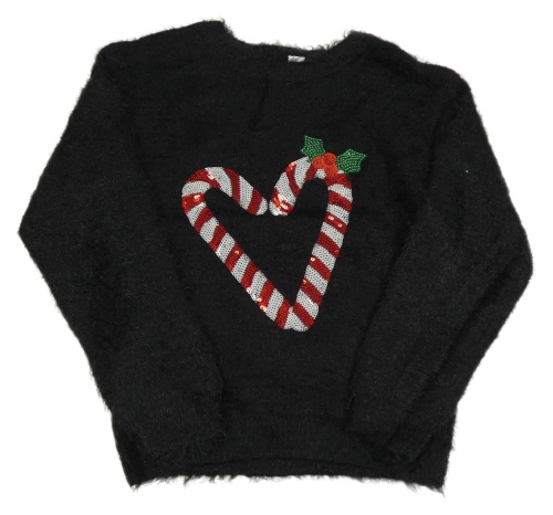 Čierny chlpatý sveter s hůlkami z flitrů Tu