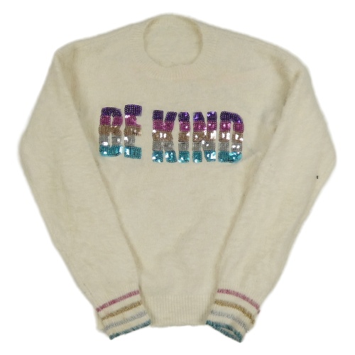 Smotanový chlpatý sveter s nápisem z flitrů Dunnes