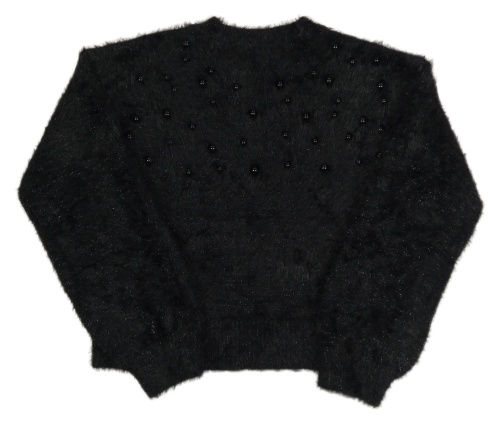 Čierny chlpatý crop sveter s korálkami a trblietkami St. Bernard