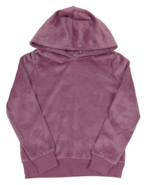 Fialovorůžová zamatová mikina so srdiečkami a kapucňou
