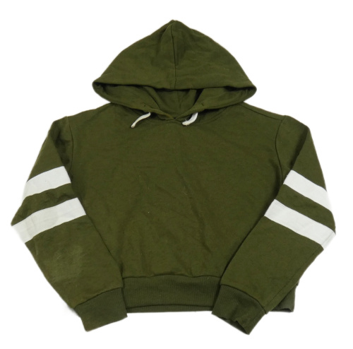 Khaki crop mikina s prúžkami a kapucňou New Look