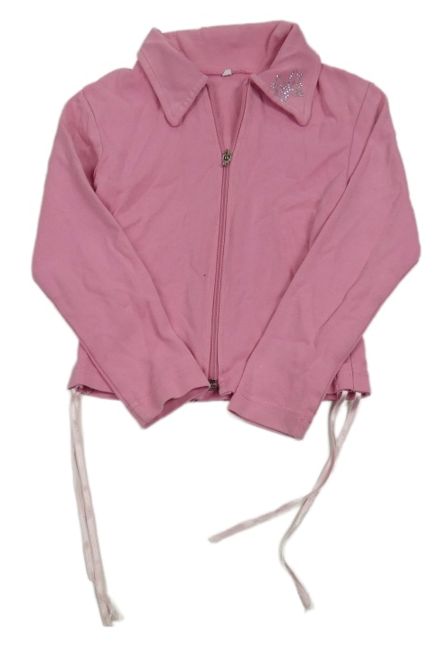 Ružová prepínaci crop mikina s nařasením a golierikom s motýlkem z kamínků