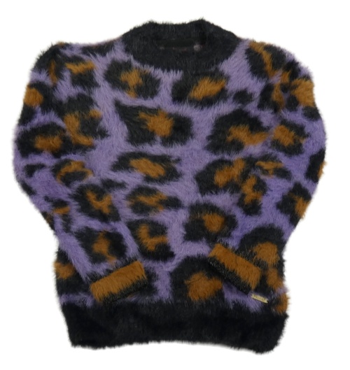 Fialovo-čierno-béžový vzorovaný chlpatý sveter Persival