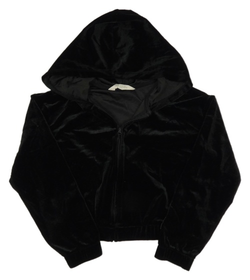 Čierna zamatová prepínaci crop mikina s kapucňou H&M