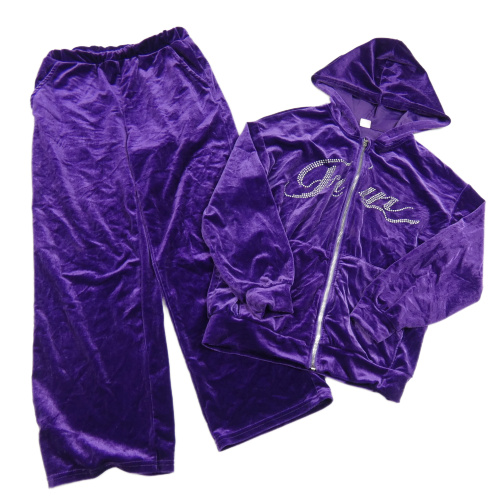 2set- fialová zamatová prepínaci mikina s nápisom a kapucí+ tepláky