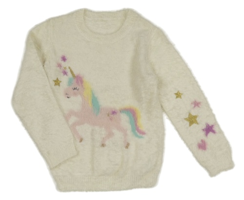 Biely chlpatý sveter s jednorožcom Nutmeg
