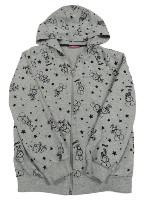 Sivá vzorovaná prepínaci mikina s obrázkami a kapucňou
