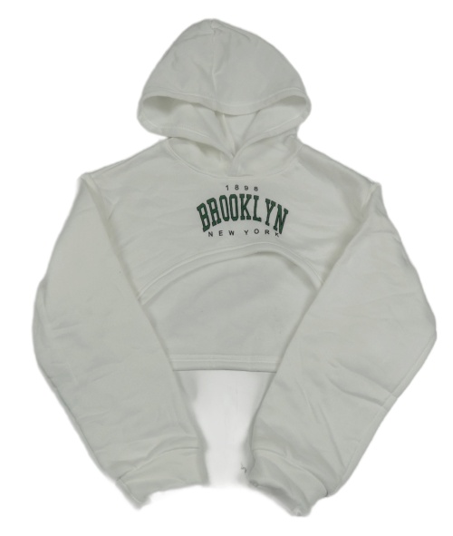 Biela crop mikina s nápismi a číslom a kapucňou SHEIN