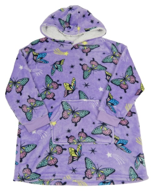 Fialová plyšová domáceá oversize mikina s motýlikmi a kapucňou PRIMARK