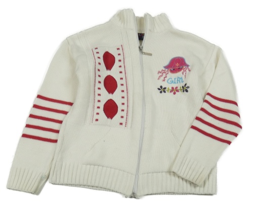Bielo-ružový prepínaci sveter s dívkou a kvetmi