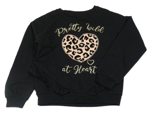 Čierna mikina so vzorovaným srdiečkom s flitrami a zlatými nápisy a volánikmi C&A