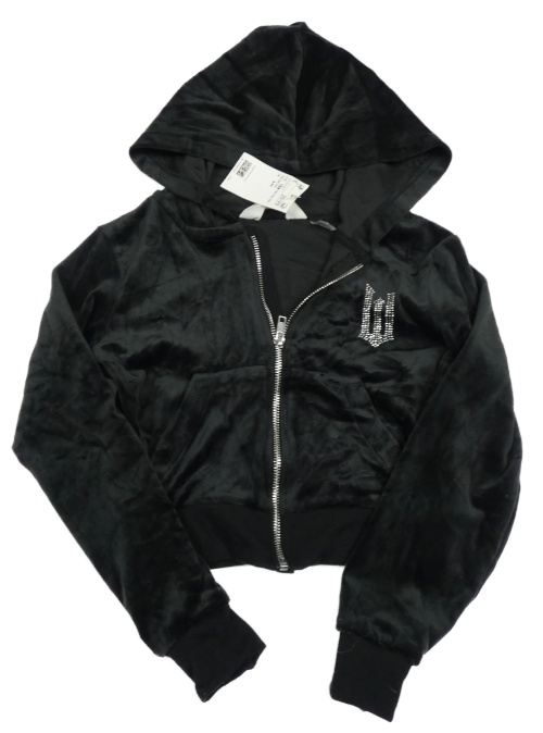 Nové - Čierna plyšová prepínaci crop mikina s písmenem z kamínků a kapucí - Wicked H&M