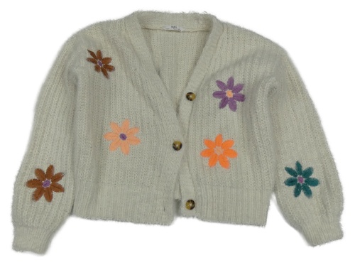 Smotanový chlpatý prepínaci oversize sveter s výšivkami květin M&S