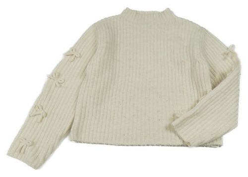 Krémový rebrovaný vlnený crop sveter s mašľami Zara