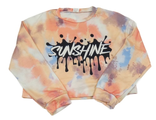 Korálovo-oranžovo-farebná batikovaná crop mikina s nápisom
