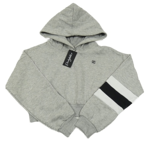 Nové - Sivá melírovaná crop mikina s prúžkami a kapucňou Pindydoll