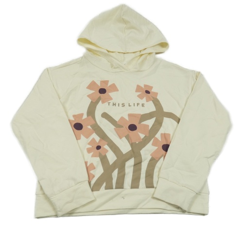 Smotanová crop mikina s kvietkami a kapucňou Coccodrillo