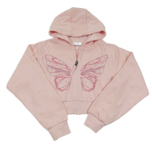 Svetloružová prepínaci crop mikina s motýlom a kapucňou Primark