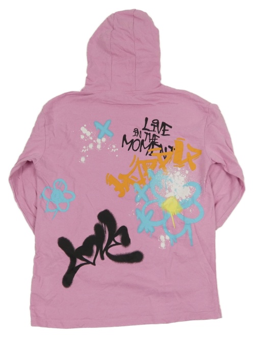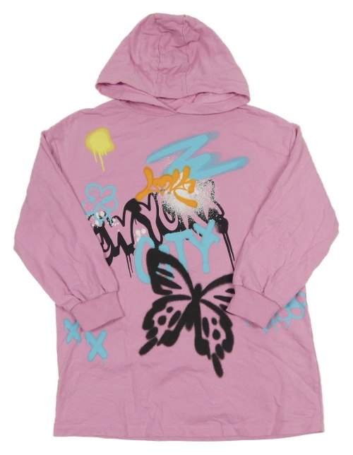 Ružová tepláková tunika s graffiti nápisy s motýlom a kapucňou Next