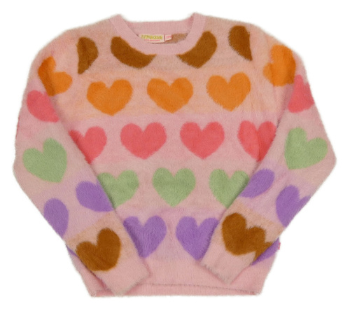 Ružovo-farebný chlpatý sveter so srdiečkami