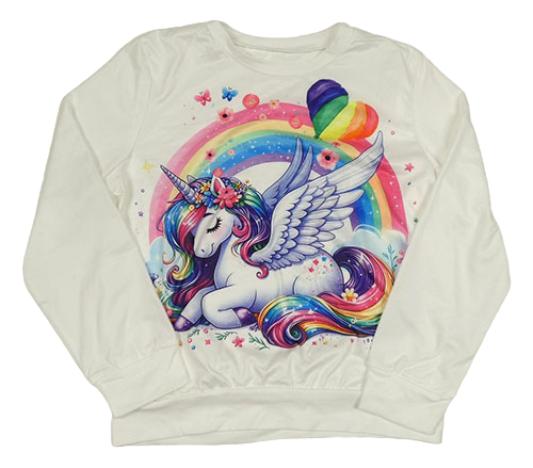 Biela ľahká mikina s jednorožcom a dúhou