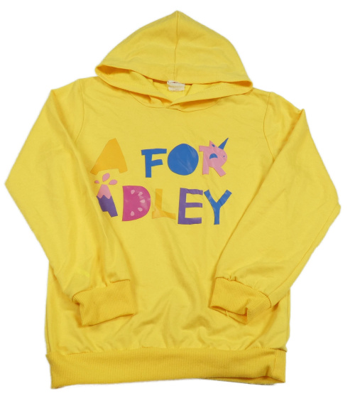 Tmavožltá mikina s nápismi a kapucňou