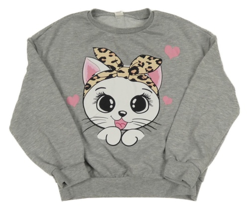 Sivá melírovaná mikina s mačičkou a srdiečkami SHEIN