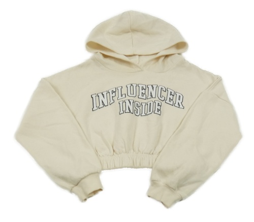 Smotanová crop mikina s nápisom a kapucňou