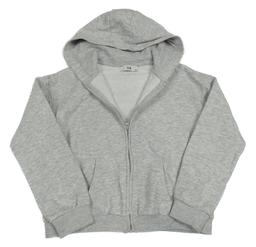 Sivo-biela melírovaná crop prepínaci mikina s kapucňou C&A