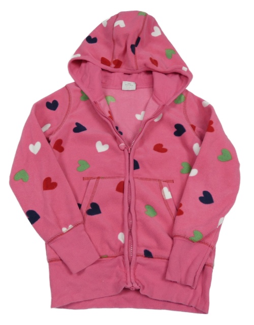 Tmavoružová fleecová prepínaci mikina s farebnými srdiečkami a kapucňou Next