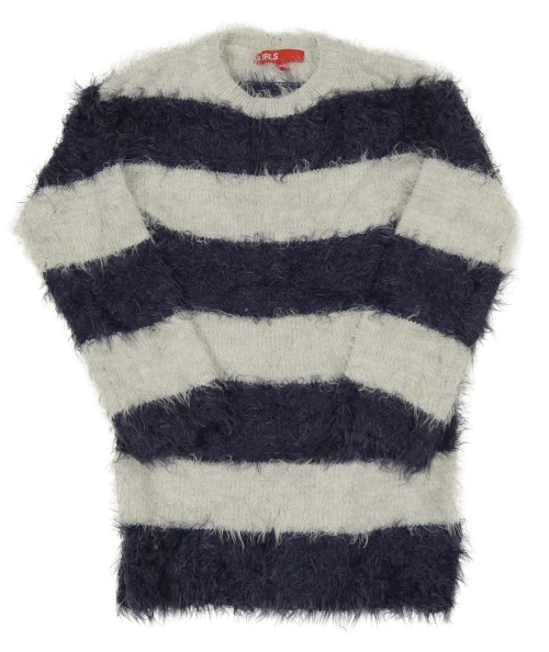 Tmavomodro-biely pruhovaný chlpatý dlhý sveter GIRLS
