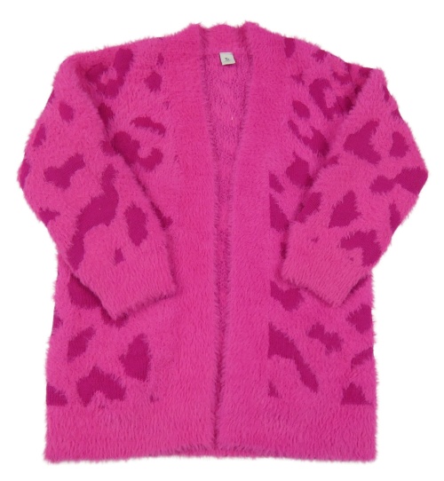 Neónově fuchsiový vzorovaný chlpatý svetrový cardigan Tu