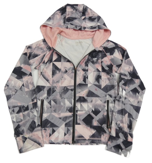 Svetloružová -sivá vzorovaná športová prepínaci crop mikina s kapucňou
