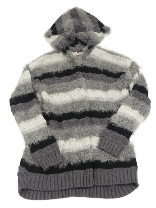 Sivo-čierno-biely pruhovaný chlpatý svetrový cardigan s kapucňou Yigga