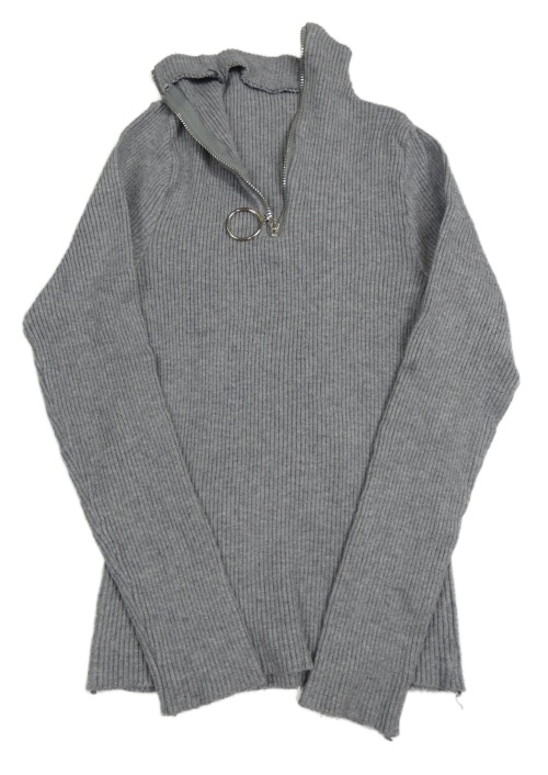 Sivý rebrovaný sveter so stojačikom a zipsom