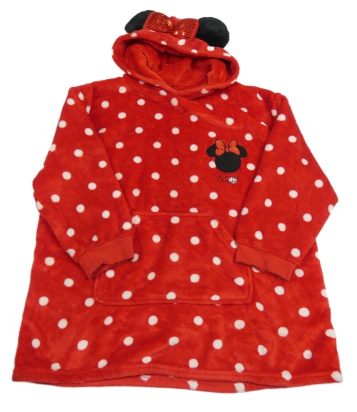 Červená bodkovaná á chlpatá oversize mikina s Minnie a kapucňou Disney vel.128-146