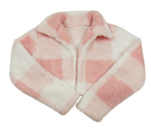 Ružovo-biele kockované chlpaté bolerko Shein
